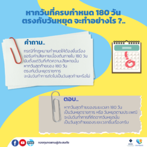 ตอบ – หากวันสุดท้ายของระยะเวลา 180 วัน เป็นวันหยุดทำการหรือวันหยุดตามประเพณี