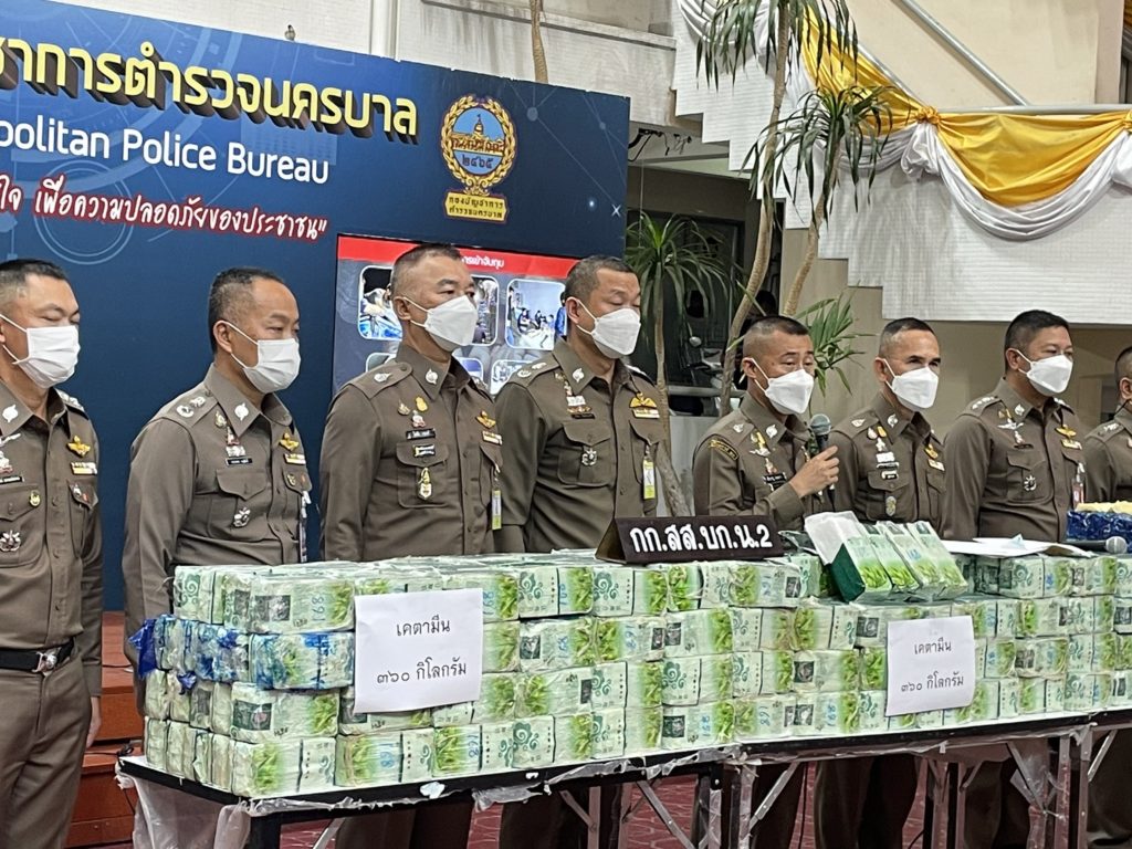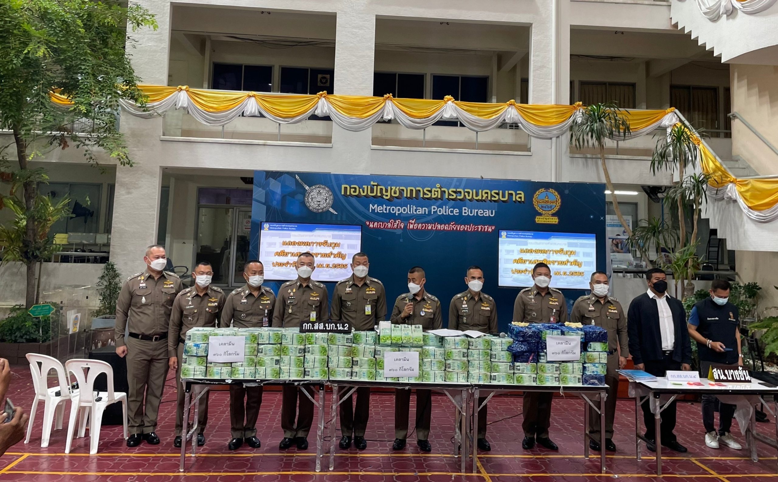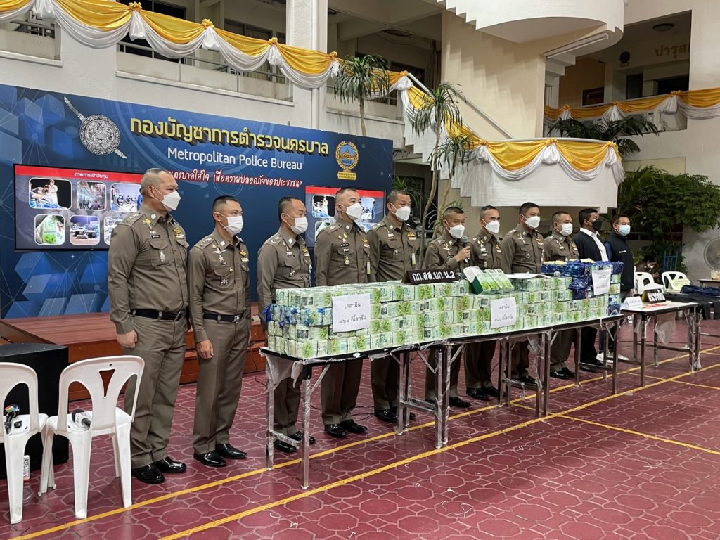 วันที่ 21 เม.ย.65 ที่กองบัญชาการตำรวจนครบาล(บช.น.) โดย พล.ต.ท.สำราญ นวลมา ผบช.น., พล.ต.ต.นิธิธร จินตกานนท์ รอง ผบช.น., พล.ต.ต.โชคชัย งามวงศ์ รอง ผบช.น. แถลงข่าว พล.ต.ต.อรรถพล อนุสิทธิ์ ผบก.น.2 , พ.ต.อ.อัครพล โทยะ ผกก.สส.บก.น.2 , พ.ต.ท.ณเอก เนตรจรัสแสง, พ.ต.ท.รัชพล กิตติคุณชนก, พ.ต.ท.สุทธิเดช โอฬาริ รองผกก.สส.บก.น.2 จับกุม 1.นายอภิสิทธิ์ อายุ 25 ปี 2.นายอัจฉระ ชาญชำนิ อายุ 25 ปี 3.นายวีรพงษ์ อายุ 25 ปี 4.นายเอกรินทร์ อายุ 25 ปี และ 5.นายสมชาย อายุ 25 ปี โดยกล่าวหาว่า”มียาเสพติดให้โทษประเภท 2 (เคตามีน) ไว้ในครอบครองโดยผิดกฎหมาย” พร้อมของกลางและตรวจยึดยาเคตามีน 9 กระสอบ น้ำหนักรวม 360 กิโลกรัม รถยนต์ 2 คัน ได้ที่จังหวัดกำแพงเพชร