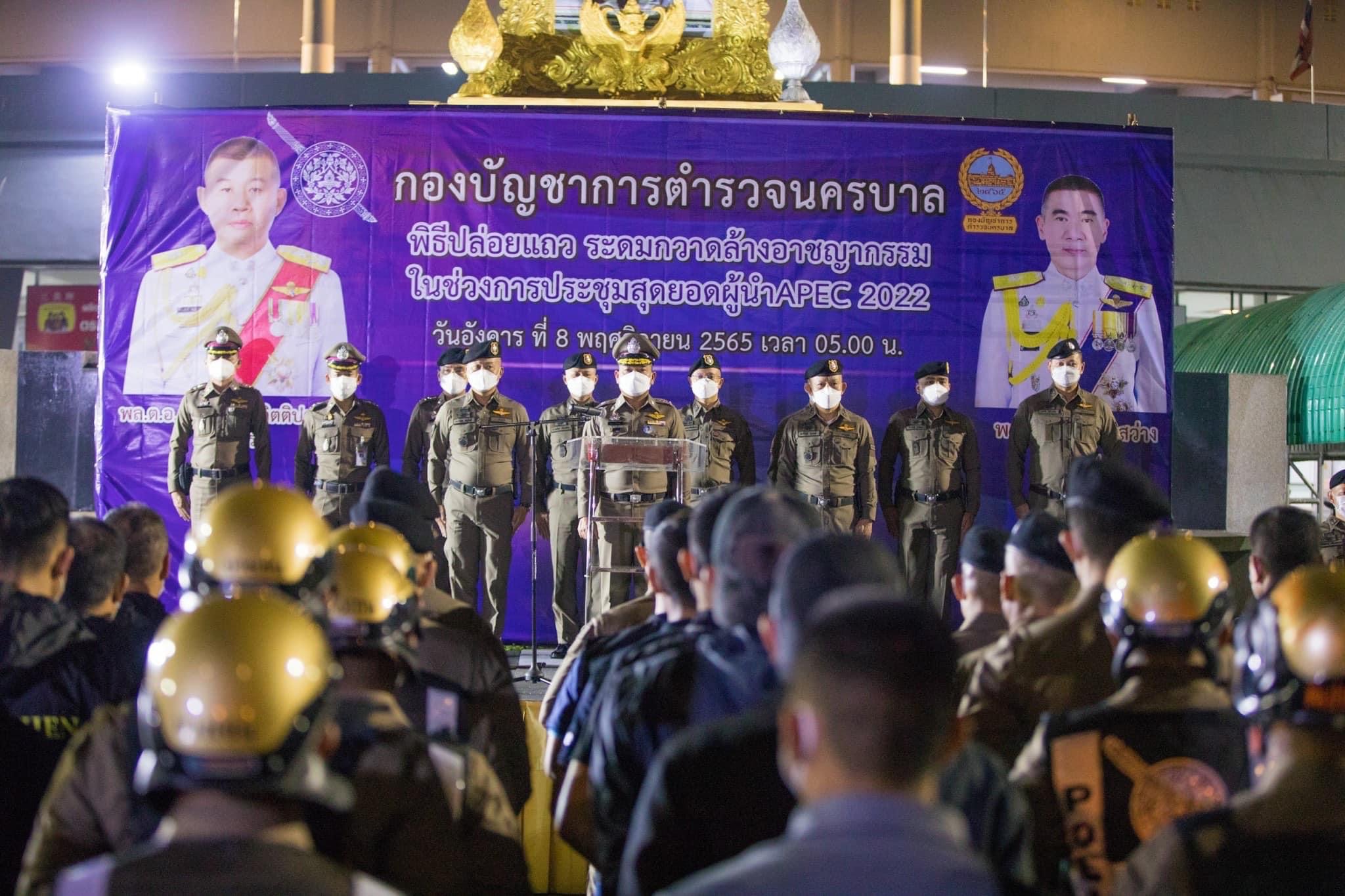 พล.ต.ต.สมควร พึ่งทรัพย์ รอง ผบช.น.(น1-3) เป็นประธานในพิธีปล่อยแถวระดมกวาดล้างอาชญากรรม ในช่วงการประชุมสุดยอดผู้นำ APEC 2022 ปิดล้อมตรวจค้นอาวุธปืน เครื่องกระสุนปืน วัตถุระเบิด ยาเสพติดและหมายจับของกองบังคับการตำรวจนครบาล 2