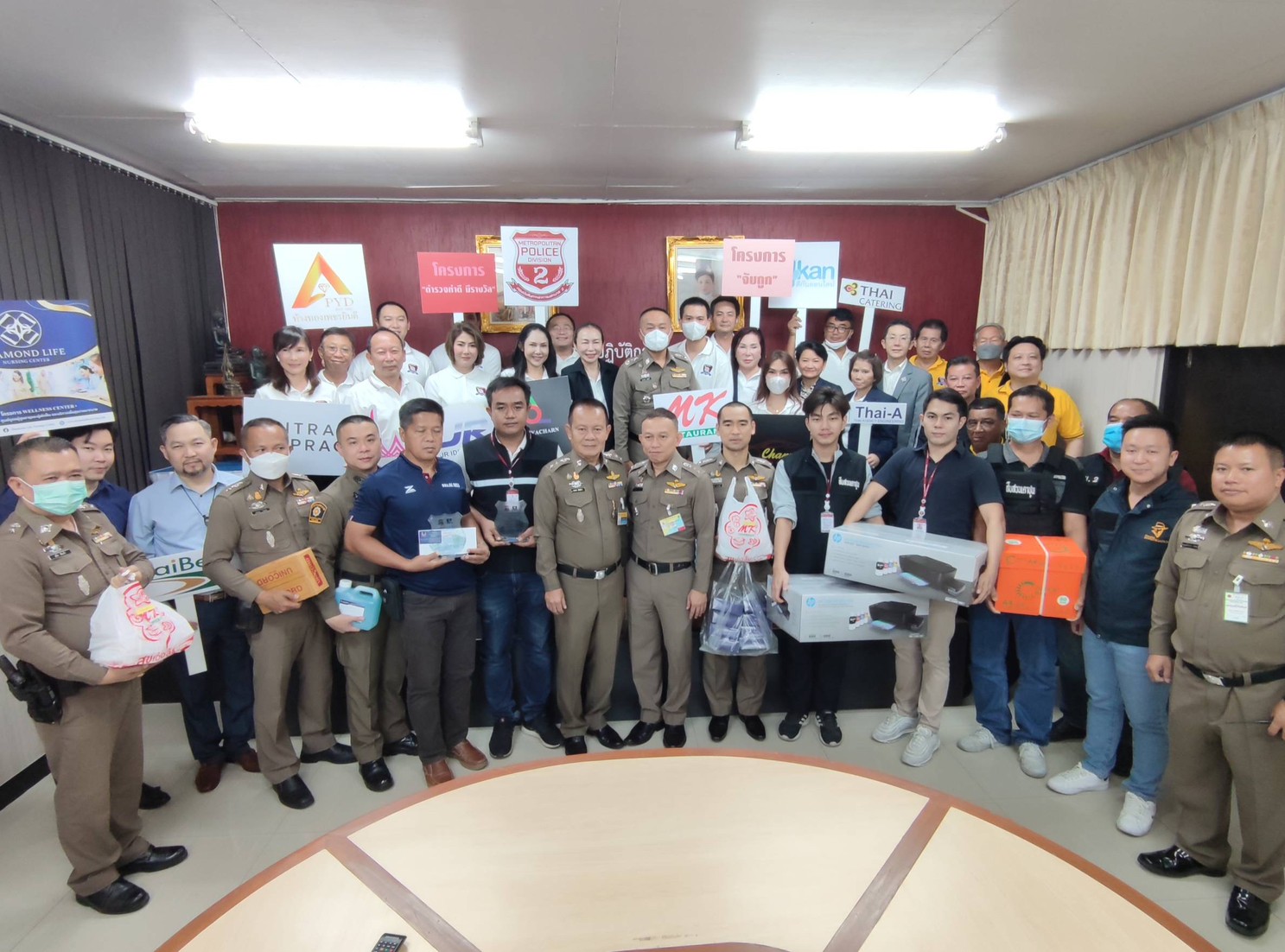 เดินทางตรวจเยี่ยมข้าราชการตำรวจ สน.ประชาชื่น และ สน.เตาปูน โดยได้มอบอุปกรณ์ที่ใช้ในการทำงานแก่พนักงานสอบสวน ตามโครงการ “จับถูก” ให้กับทั้ง 2 สน. อาทิเช่น ตู้เหล็กใส่เอกสาร 1 ตู้ , ปริ้นเตอร์ 1 เครื่อง , อาหารชุด สน.ละ 20 กล่อง, เครื่องดื่มจำนวน 1 ลัง , น้ำดื่ม จำนวน 2 แพ็ค , ขนมของว่าง สน.ละ 50 กล่อง และ กระดาษ เอ4 จำนวน 4 กล่อง